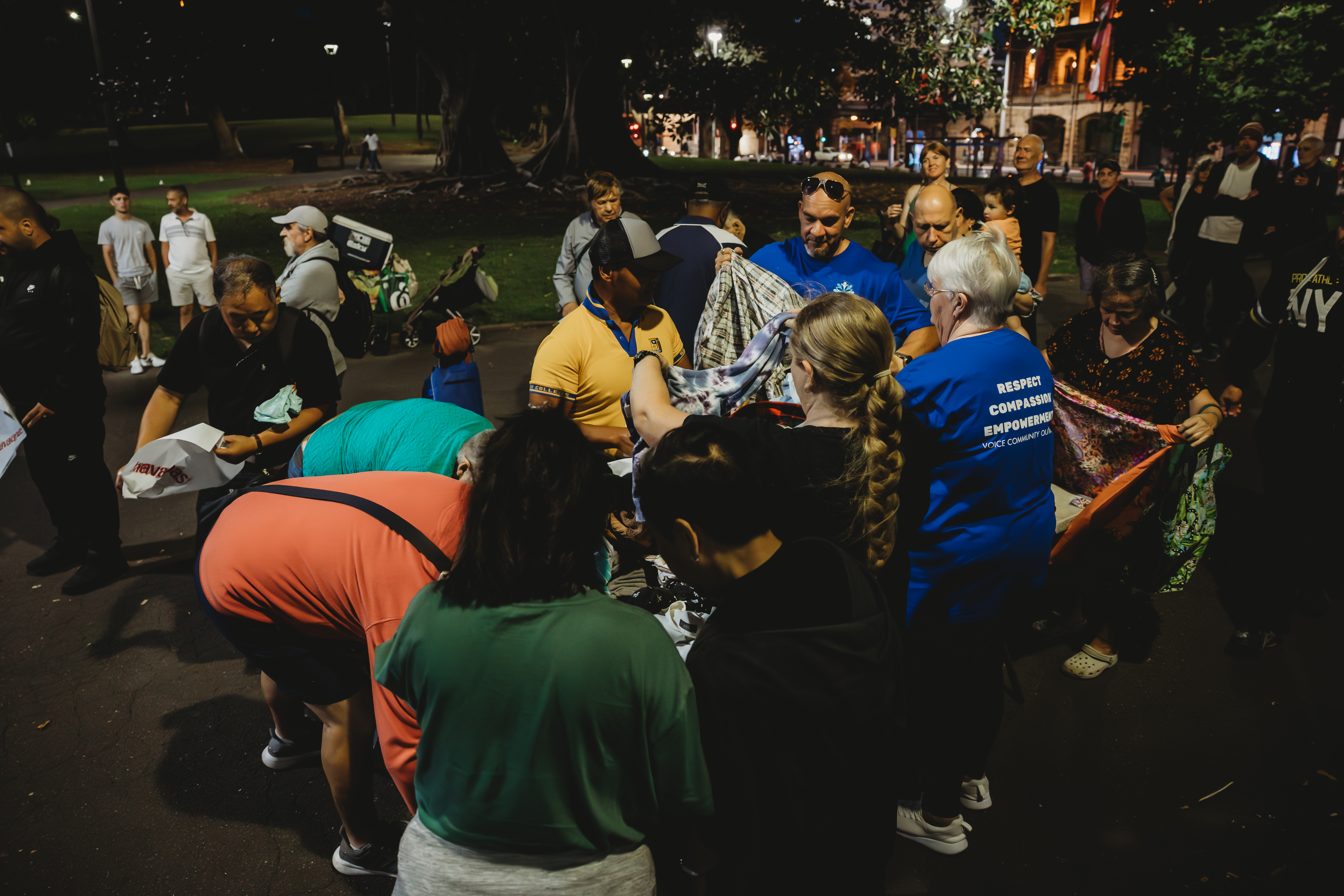 Every Friday night our volunteers distribute food, clothing, and blankets to the homeless in various locations throughout Sydney.
